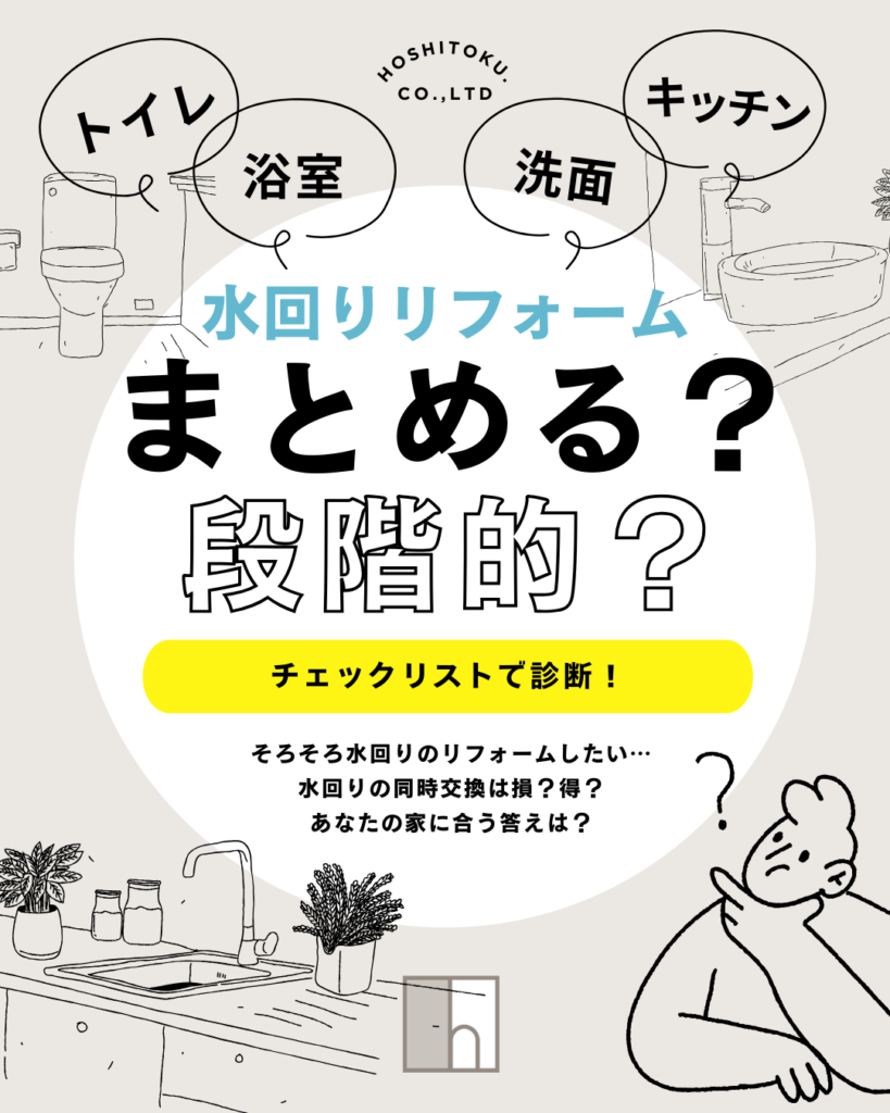 予算を見ながら1か所ずつ進めるべきか、思い切って水回り4点をまとめて工事するべきか。