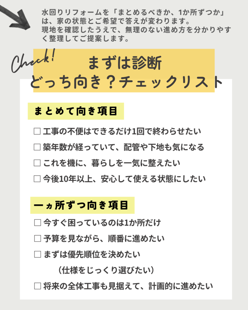 「まとめるべきか、1か所ずつか」は、家の状態とご希望で答えが変わります。