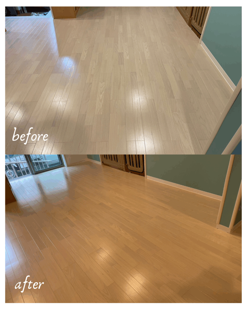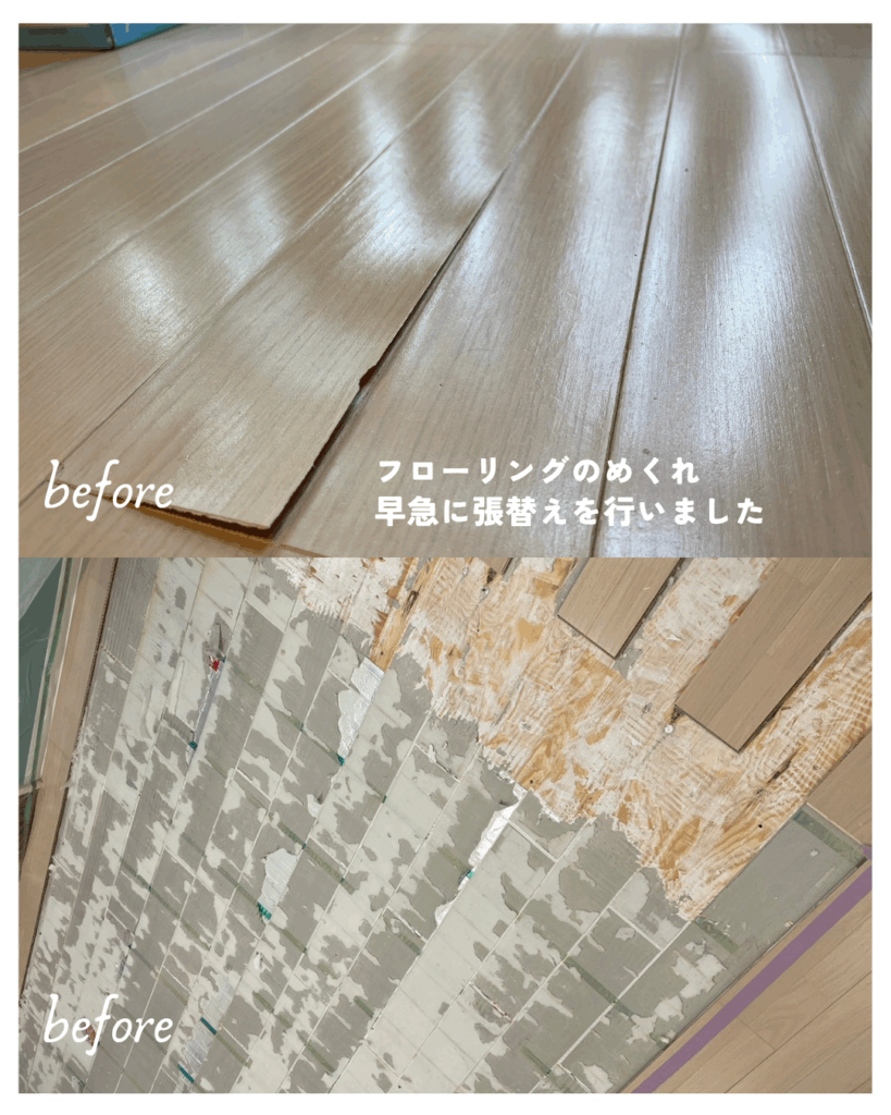 所々で劣化が進んでいたため、フロア全面張替え”をご提案しました。