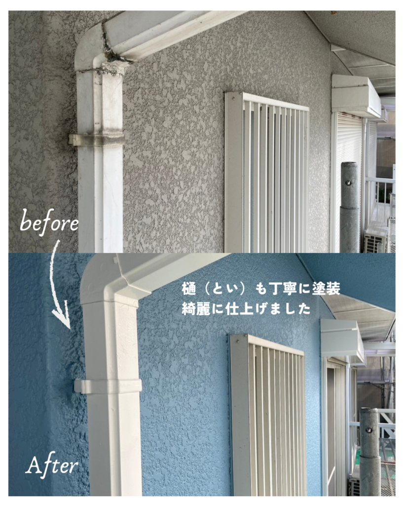 樋や門扉も細かな部分まで丁寧に塗装しました。